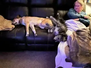 This is Bronson and Penny. Penny is also a rescue dog from Pets Alive. This was my chair that the 2 of them have taken over.